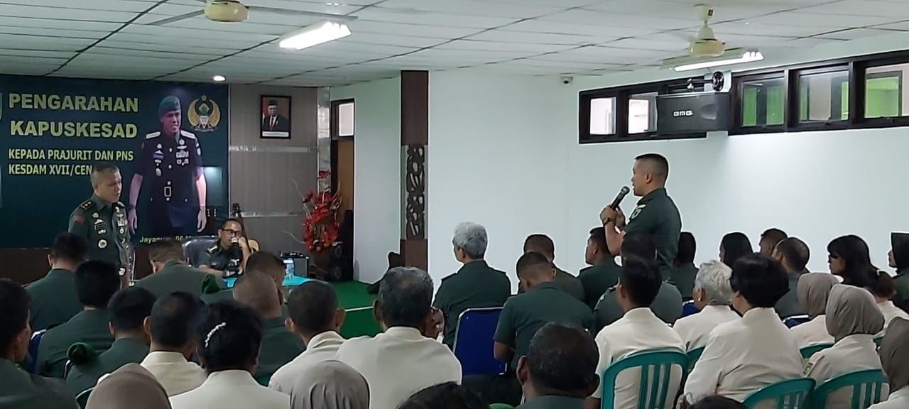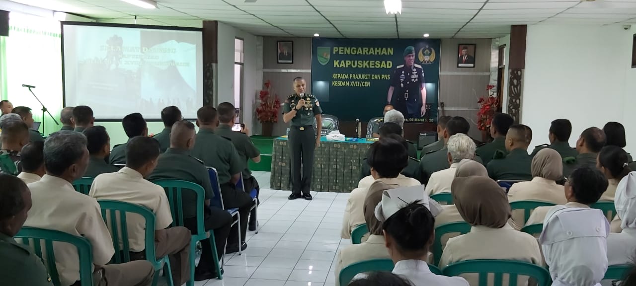 Dalam pengarahannya kepada segenap Prajurit dan PNS Kesdam XVII/Cendrawasih, Kapuskesad menyampaikan berbagai harapan yang harus ditingkatkan, baik masalah rekruitmen personil, peningkatan kapasitas sumber daya manusia baik melalui pelatihan ataupun berupa kursus-kursus yang tentunya akan mendapat prioritas untuk kesempatan mengikuti pendidikan ataupun kursus dari pimpinan guna mempersiapakan reakreditasi, begitu juga untuk pendistribusian dukungan matkes dan bekkes untuk daerah penugasan di Papua. Kapuskesad juga berharap untuk memberikan pelayanan yang terbaik dan komunikasi serta kerjasama dan keikhlasan untuk menjadi orang yang berguna.