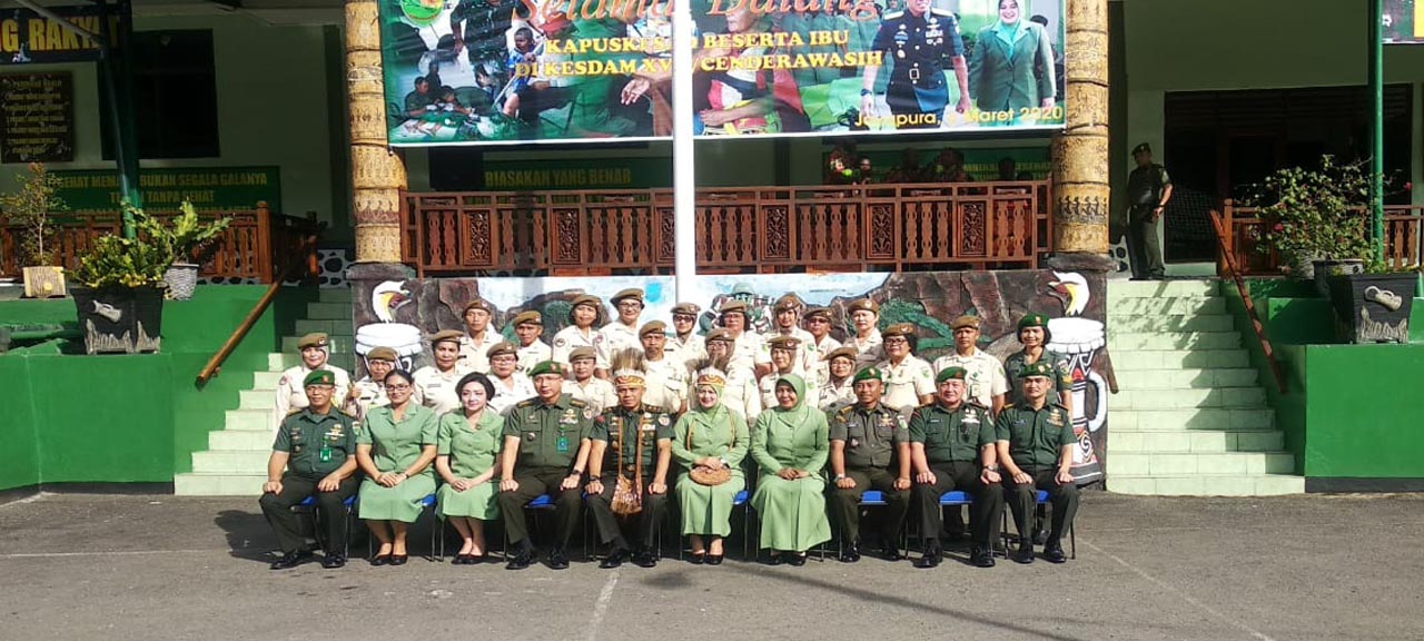 JAYAPURA_kesad.mil.id. Kapuskesad Mayjen TNI Dr.dr. Tugas Ratmono, didampingi Ibu selaku ketua Persit KCK Cabang XIV Puskesad PG Mabesad Ny. Vivie Tugas Ratmono melakukan kunjungan kerja di Kesdam XVII/Cendrawasih, Jumat 6 Maret 2020.