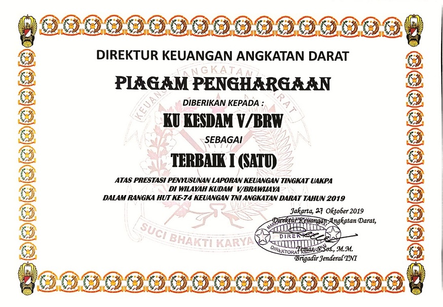 Penganugerahan Predikat Terbaik Ku Kesdam V/Brawijaya