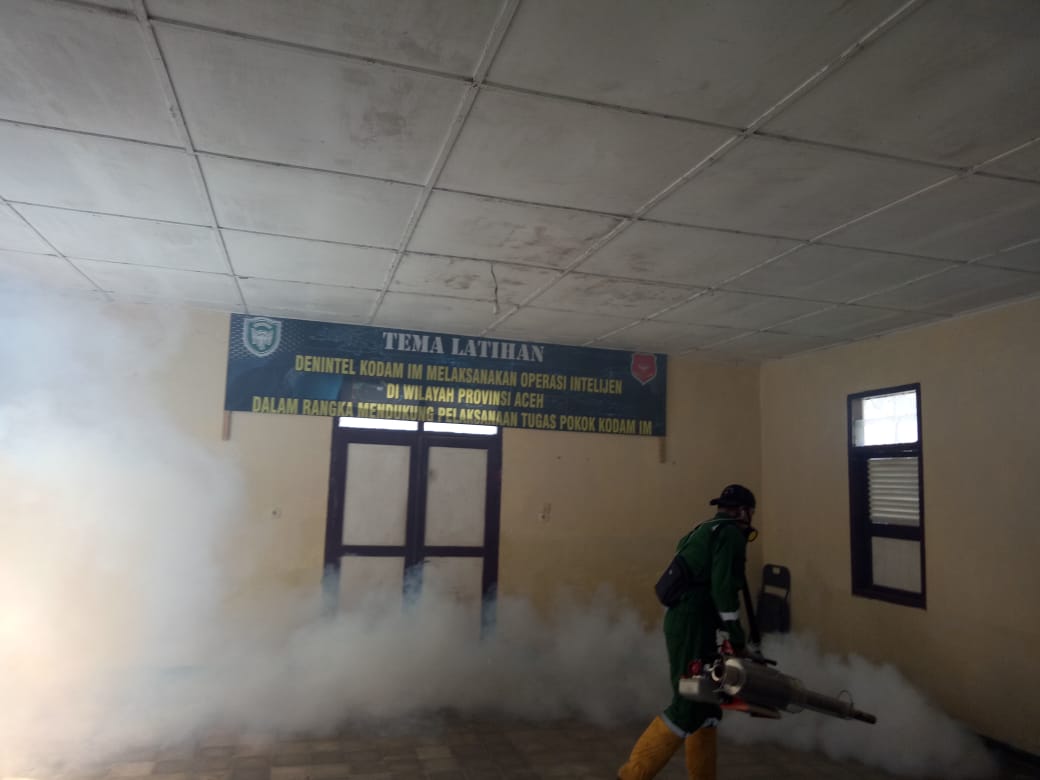 Tim Kesehatan Preventif Kesdam IM Melaksanakan pengasapan Fogging di Perumahan Asrama Deninteldam IM